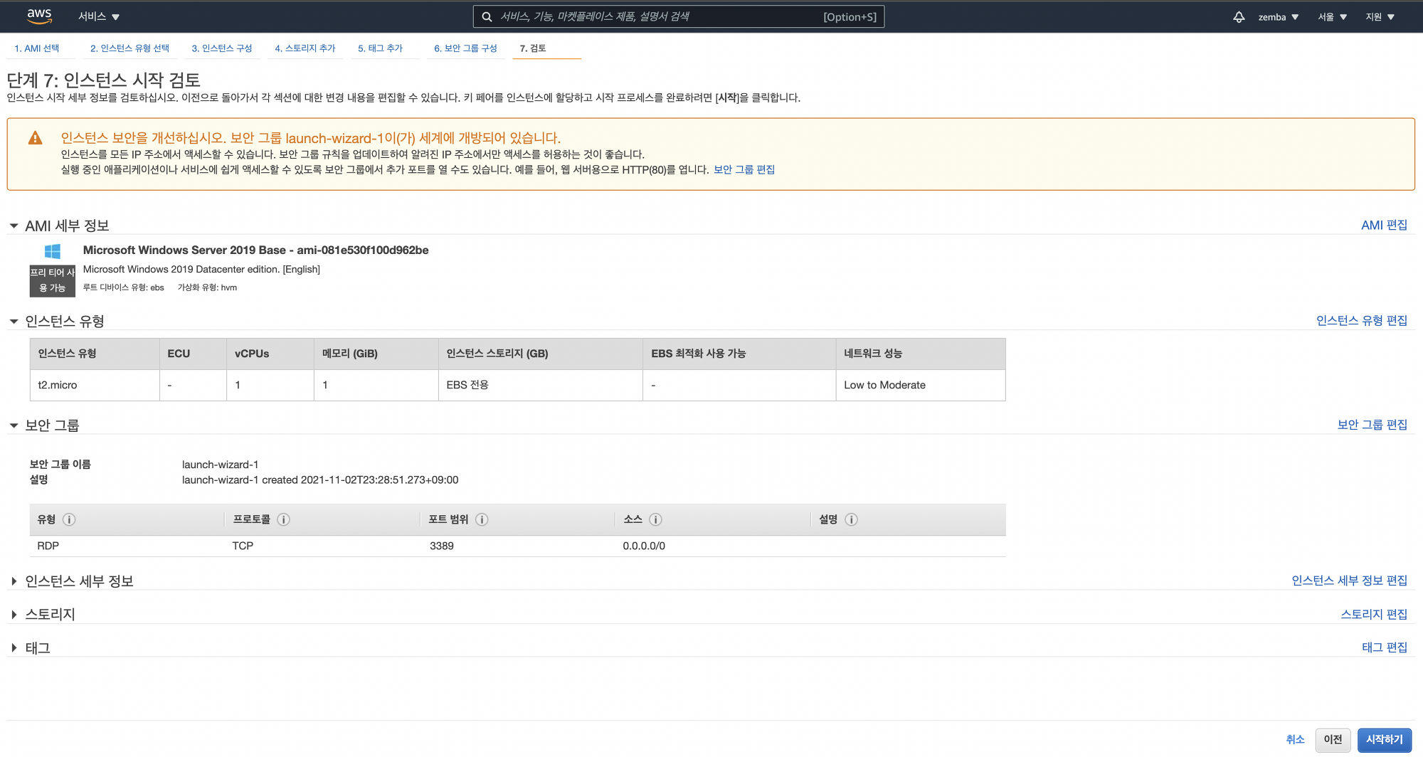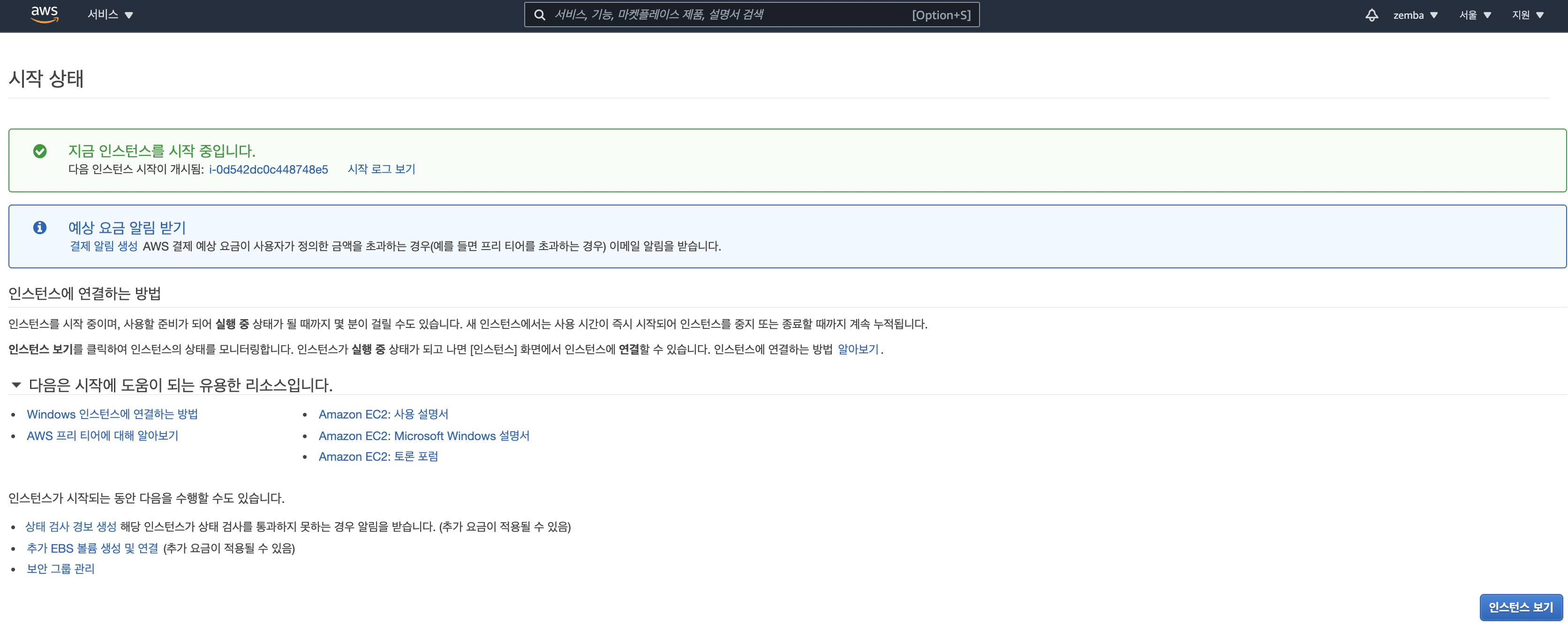 마무리가 되었으면 인스턴스 시작 버튼을 누르시면 됩니다.