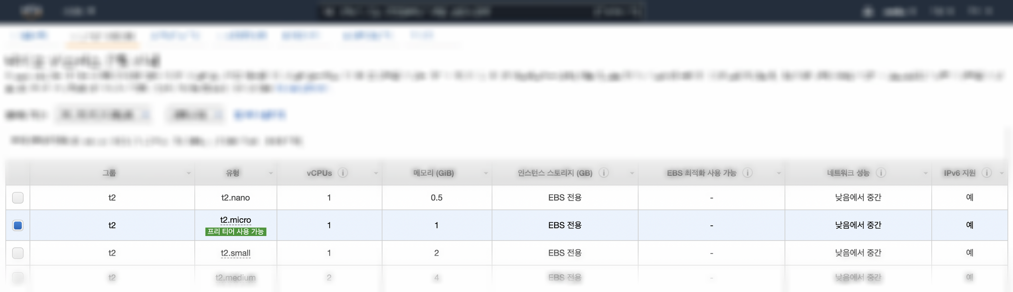 역시나 저희는 무료로 써야 하기 때문에 프리티어가 붙은 t2.micro를 선택합니다.