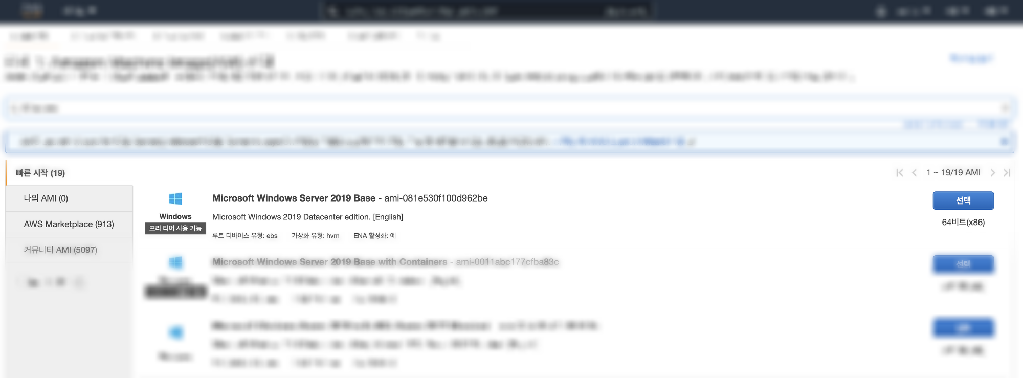 Microsoft Windows Server 2019 Base를 선택하겠습니다.!! ( 아래쪽에 더상위 버전은 있지만 뭐 간단한 기능만 돌릴 거라 노상관 )