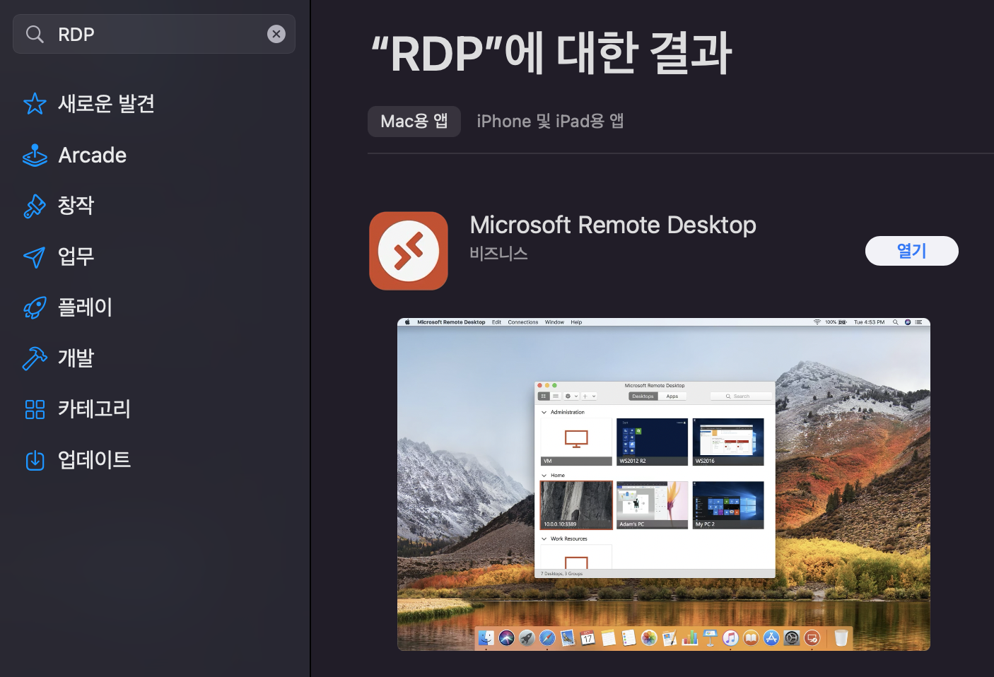 App Store를 열고 RDP를 검색합니다. 다운을 받습니다.