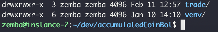그다음에 start.sh를 실행 가능한 파일로 권한을 부여하여 실행합니다. 그다음에 아까 가상 환경을 적용한 activate를 수행시켜 가상 환경에서 수행되도록 적용합니다. 그리고 마지막 코드는 main.py가 자동매매의 start 코드의 파일이기 때문에 해당 파일을 실행하게 합니다.