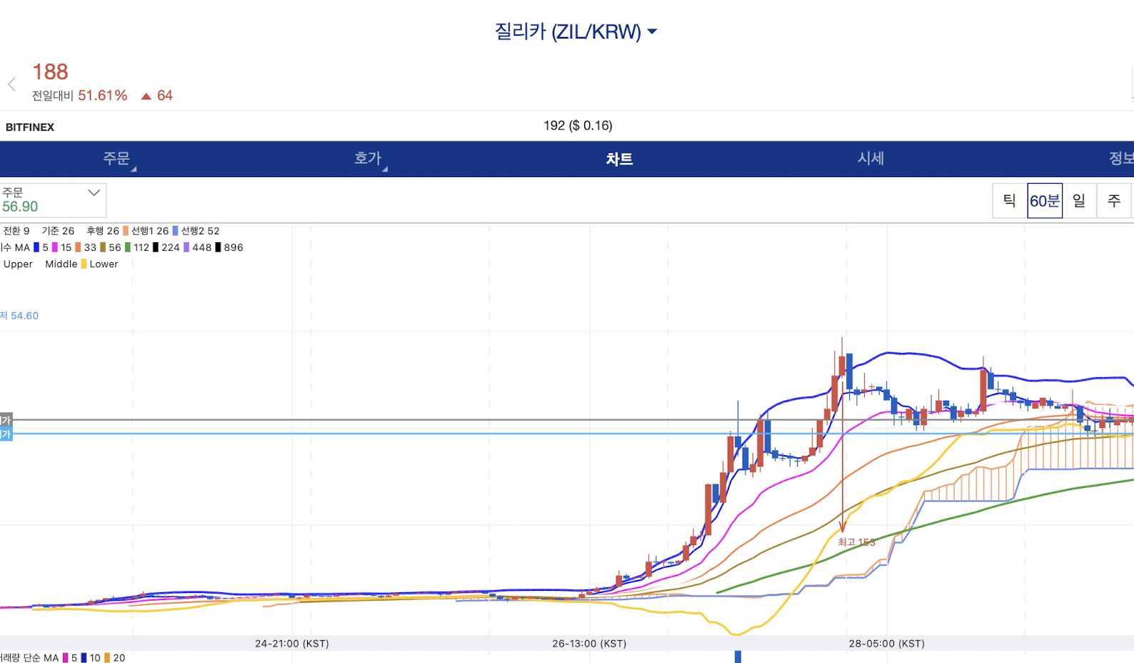 위 차트를 보시면 정말 쉽게 이해가 될 것 같아 보여 가져왔습니다. 최근 질리카 코인이 거의 100% 이상 상승 중인데요~ 볼린저 밴드를 보시면 폭이 엄청 좁게 형성되어 이동되다가 상한선을 건들면서 엄청난 큰 상승이 발생하면서 상한선과 하한선의 폭도 역시 엄청 간격이 커지는 모습을 볼 수 있습니다. 그래서 상한선을 캔들이 돌파할 경우에 상승추세가 강하다고 하여 매수 포인트로 사용하고 반대로 하한선을 돌파할 경우에 하락 추세가 강하다고 하여 매도 포인트로 사용되고 있습니다. 그리고 폭이 좁다는 것은 횡보한다는 의미로 봐도 되겠죠? ㅎㅎ 이렇게 해석하면서 자신만의 기준을 가져가면 매매 포인트를 잡을 수 있을 것 같습니다.