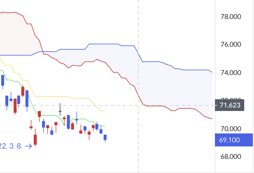 이렇게 여러 가지 방법이 있지만 제가 구독하고 있는 단테 님의 영상에서는 구름대 매매를 활용하는 영상을 자주 확인했습니다. 그렇기 때문에 저도 구름대 매매를 기준으로 차트를 많이 해석해보려고 노력하고 있습니다.