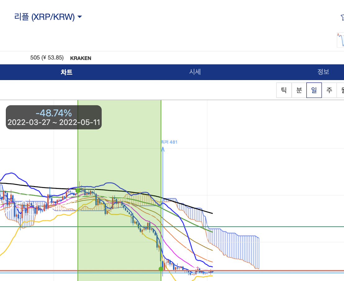 아무튼..... 그렇다면 지금 다시 생각을 해보아야 할 내용은 이전 포스팅의 백테스팅 결과입니다. 대략적으로 간추려보면 손절률은 -35% 정도로 잡고 익절은 높아지면 높아질수록 수익이 좋아진다..... 가 테스팅의 결과였습니다. 위의 차트 그림들로만 봐도 2021년에 7월부터는 130% 이상도 수익구간이 있었으니까 맞는 수치일 것 같습니다. 그러나 마지막에 2022년도의 차트의 진행은 그렇지 않기 때문에 장기로 전략을 세운다면 지하실의 지하실의 지하실을 맞이하게 될 수도 있을 것 같습니다. ( 역시나 개인적인 생각입니다!! )
