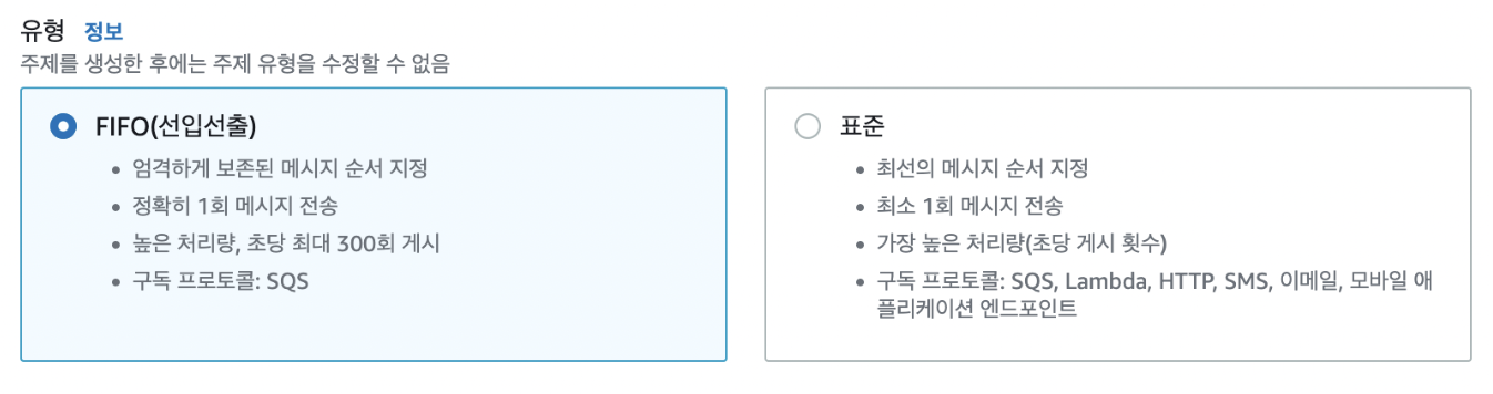 - 큰차이점은 FIFO면 SQS로만 구독 가능함